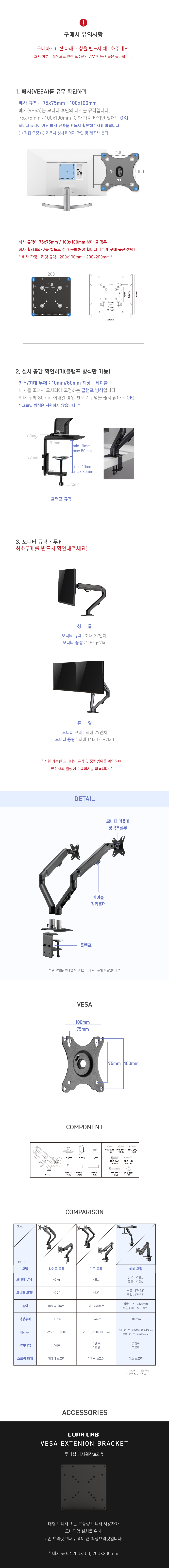 • 루나랩 모니터암 거치대 싱글 블랙 라이트