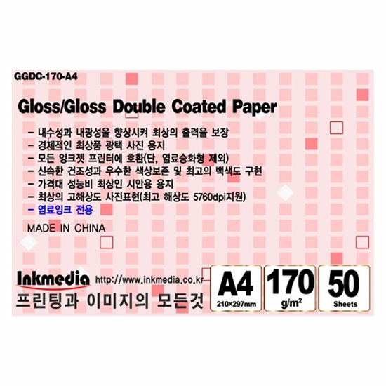[잉크미디어]양면 광택 포토용지 인화지 170gsm A4 5권 (250매)