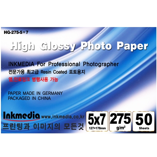 [잉크미디어]고광택 포토용지 인화지 RC독일산 275g 5x7 10권 (500매)