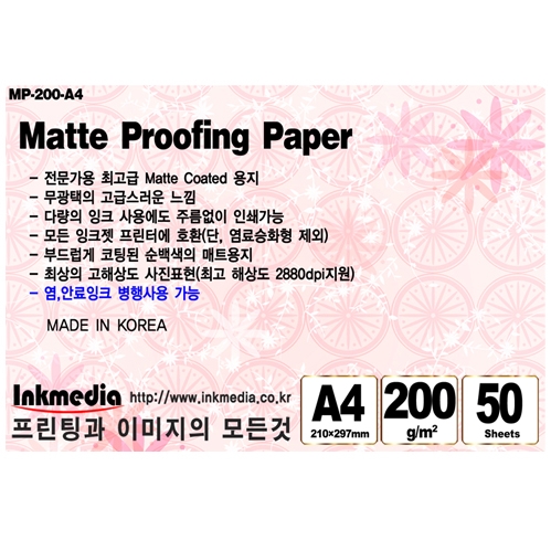 [잉크미디어]잉크젯전용지 매트지 200g/m2 A4 10권 500매