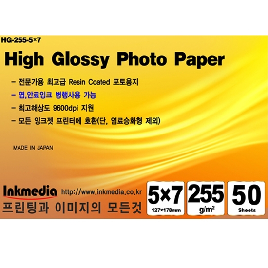 [잉크미디어]고광택 포토용지 인화지 RC일본산 255g 5×7 10권 (500매)