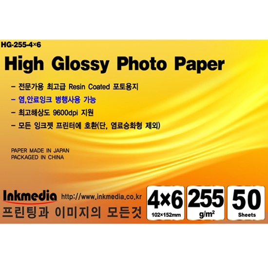 [잉크미디어]고광택 포토용지 인화지 RC일본산 255g 4×6 10권 (500매)