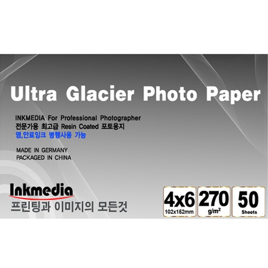 [잉크미디어]저광택 울트라글라시어 잉크젯전용 포토용지 270g/m2 4×6 10권 (500매)