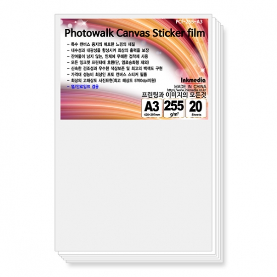 [잉크미디어]포토워크 캔버스 스티커필름 255g/m2 A3 20매 무광 캔버스재질 필름