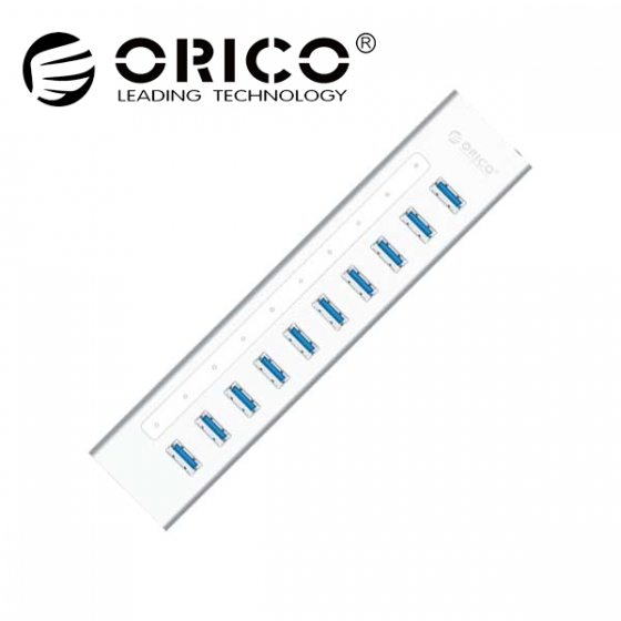 [orico(오리코)]A3H10 10포트 USB3.0 허브 실버 [유전원] ( 국내유일 12V 아답터 )