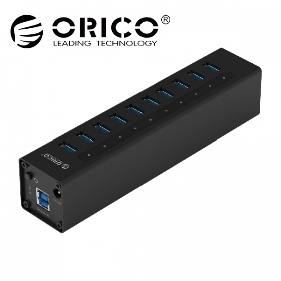 [orico(오리코)] A3H10 10포트 USB3.0 허브 블랙 [유전원] ( 국내유일 12V 아답터 )