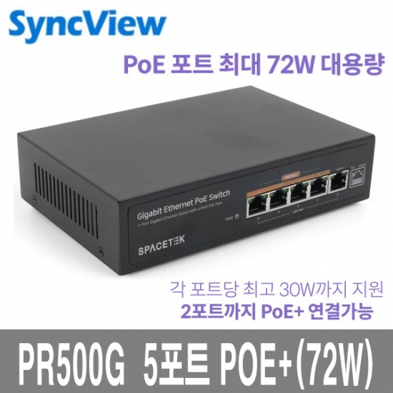 [(주)넷탑씨앤씨]싱크뷰 PR500G 5포트 기가 POE 72W 스위칭허브