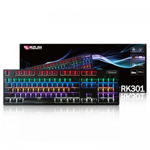 [RIZUM]유선 기계식 키보드, RK301 완전방수 푸딩 키캡 축교환, 광축 블랙/USB