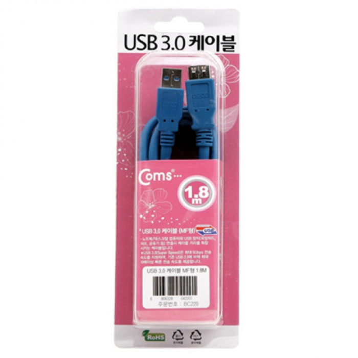 [라이트컴] COMS USB 3.0 (A-A)(M/F) 연장 케이블 (BC220, 1.8m)