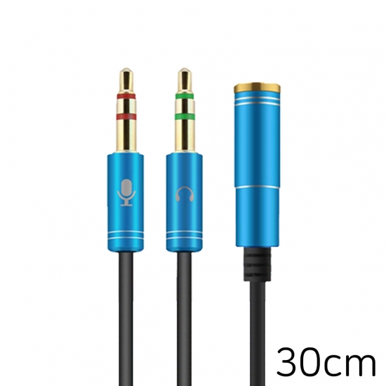 [아이티플러스]이어셋 to PC 변환 어댑터 블루 30cm