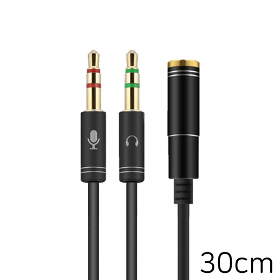 [아이티플러스]이어셋 to PC 변환 어댑터 블랙 30cm