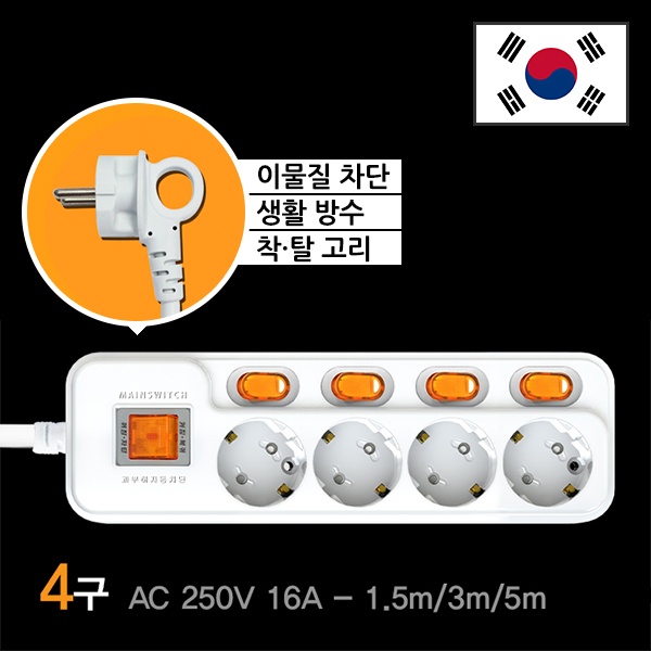 [현대일렉트릭]멀티탭 4구/16A/개별 HMP-42 [1.5M]
