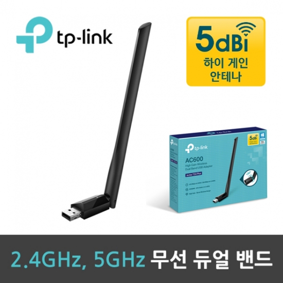 [TP-LINK]Archer T2U Plus AC600 듀얼밴드 고성능안테나 USB 무선 랜카드
